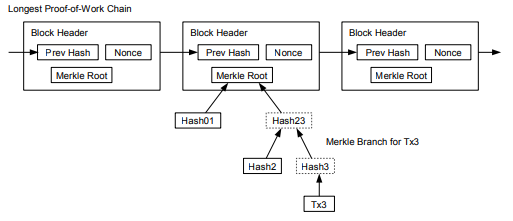 트랜잭션이 없는 블록 헤더는 약 80바이트입니다.(블록안에 트랜잭션이 많으면?, 년도가 쌓이면?) 10분마다 블록이 생성된다고 가정하면 연간 80바이트 * 6 * 24 * 365 = 4.2MB입니다. 2008년 현재 일반적으로 2GB의 RAM으로 판매되는 컴퓨터 시스템과 현재 연간 1.2GB의 성장을 예측하는 무어의 법칙을 고려할 때 블록 헤더를 메모리에 보관해야 하는 경우에도 스토리지는 문제가 되지 않습니다.