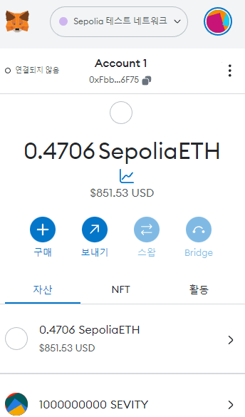- 메타마스크에서 메인넷 대신 sepolia테스트넷으로 설정하고(그냥 고르면 되는 수준이다)