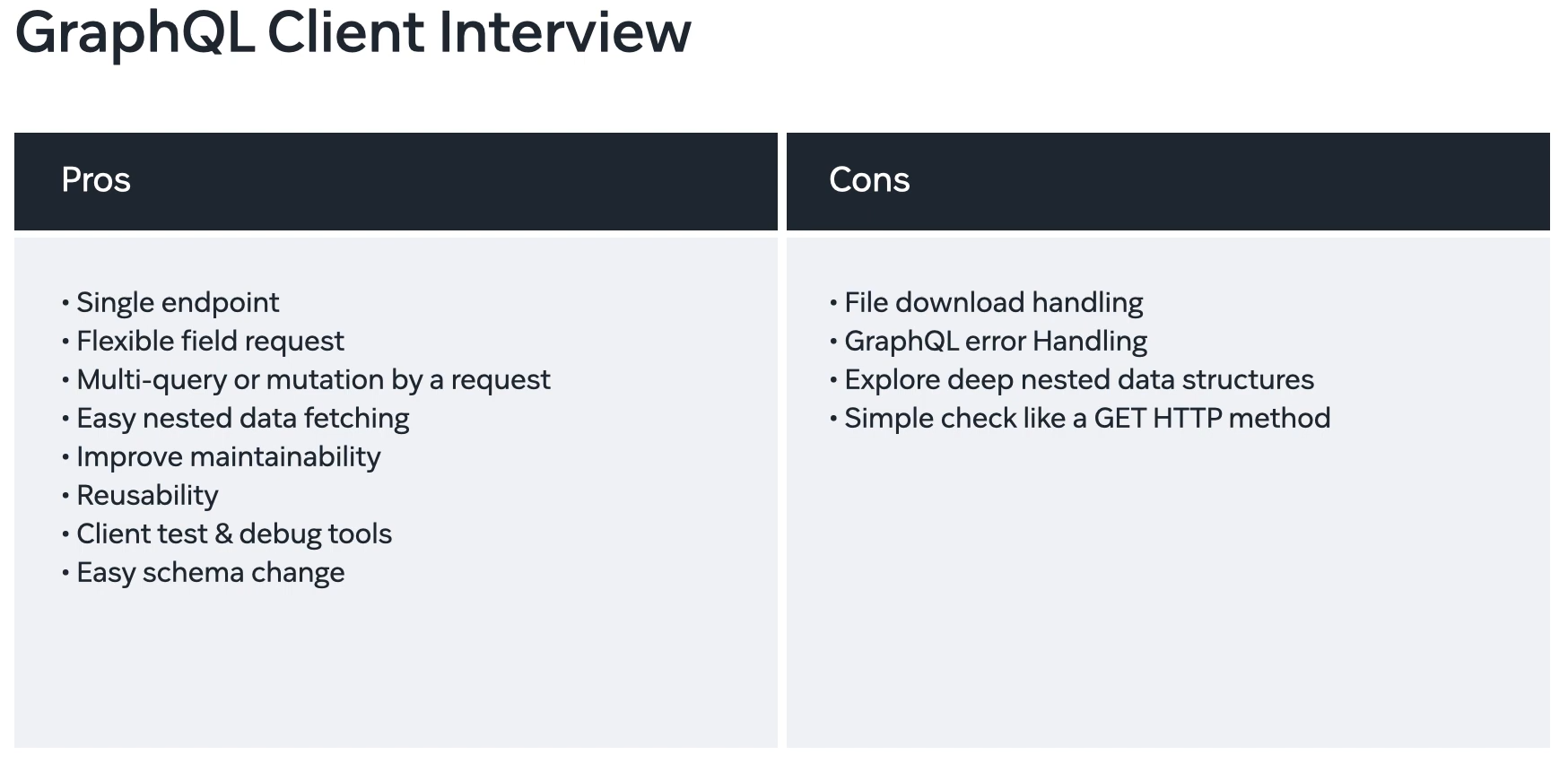 - 또한, 클라이언트는 중첩된 쿼리를 생성하여 관련된 객체와 필드를 한 번의 요청으로 가져올 수 있습니다. 이는 데이터의 관계와 구조를 유연하게 표현할 수 있으며, 복잡한 데이터 요청을 단순화할 수 있습니다.