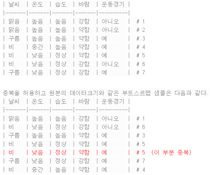단계1. 부트스트랩 샘플링 (Bootstrap Sampling):