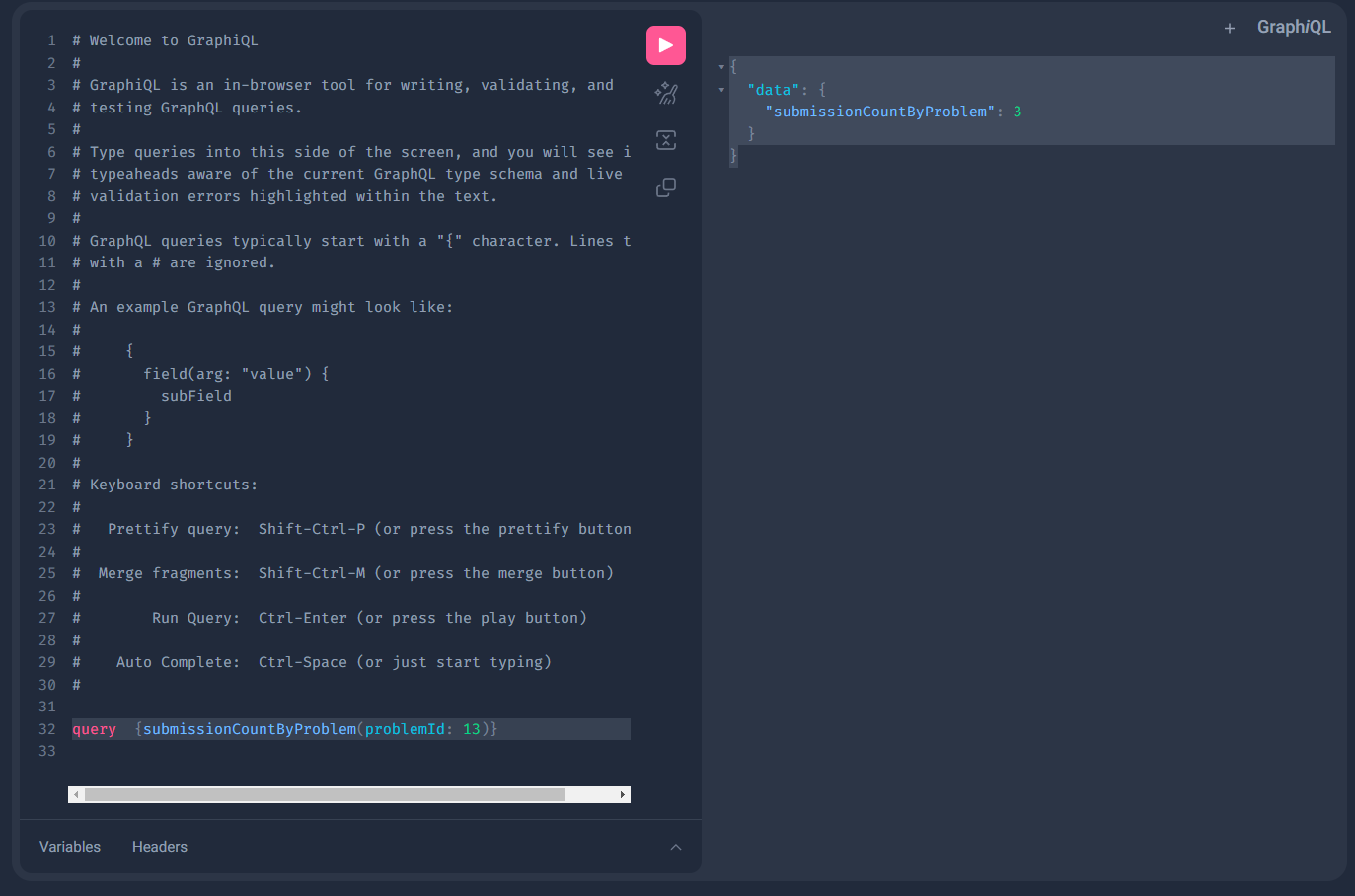 submissionCountByProblem(problemId: ID!): Int